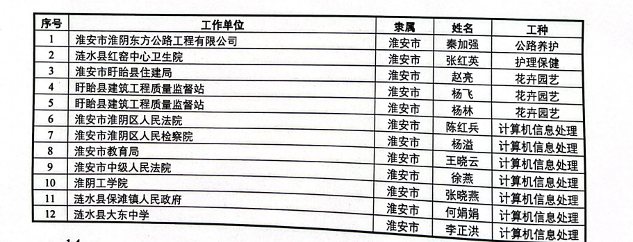 2022年度淮安市机关事业单位工勤岗位技师考评通过名单如下: